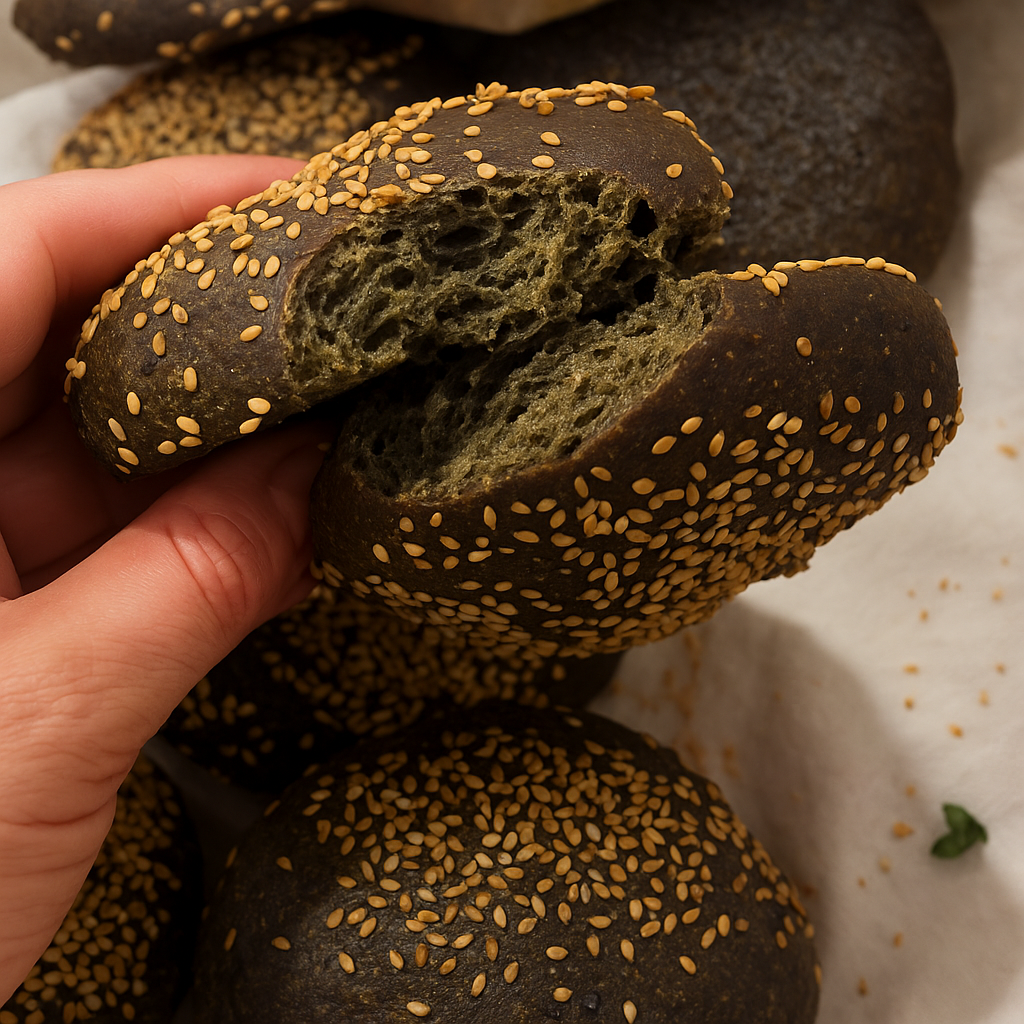 Selvom farven er grøn, så er smagen mild og nøddeagtig med et hint af umami fra brændenælden og sort sesam. Og så er de nok verdens letteste boller at lave.